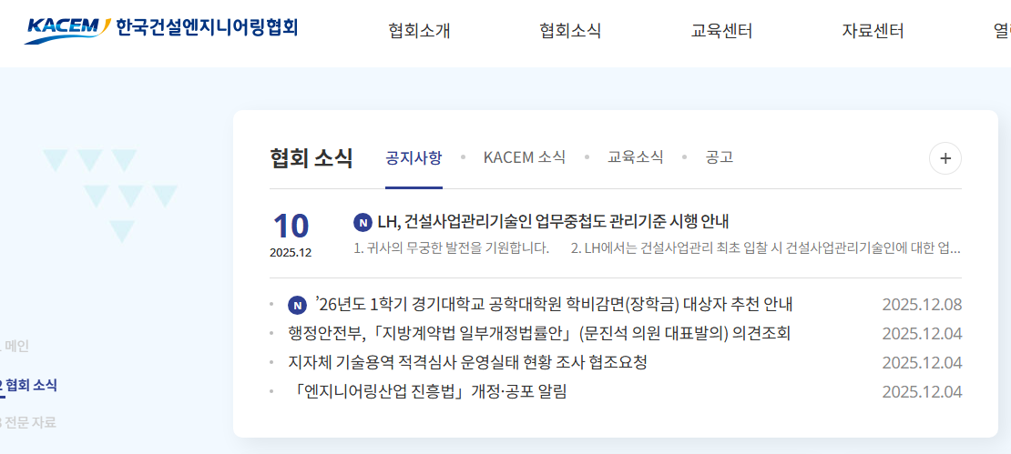 한국건설엔지니어링협회 홈페이지